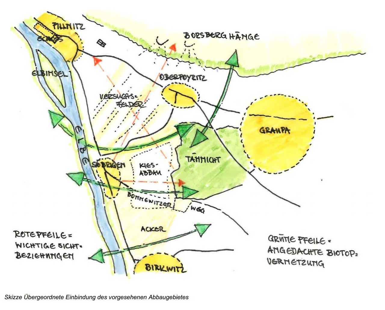 Kiesabbau am Standort Söbrigen, heisst Kiesabbau in einer historischen Kulturlandschaft mit dem grossräumigen Denkmalschutzgebiet „Dresdener Elbhänge“(FFH Gebiet), dem Elbtal (FFH Gebiet), Landschaftsschutzgebieten, einem beliebten und bekannten Erholungsgebiet mit Schloss Pillnitz, dem Königlichen Weinberg, der Rysselkuppe, der Weinbergkirche, am Elbhang entlang der Dichter-u.Malerweg, oberhalb der Weinberge der Leitenweg, sowie elbtalnahe der Elbradweg zwischen Dresden und der Sächsischen Schweiz und der Mittelländische Radweg(Bayreuth nach Zittau).
