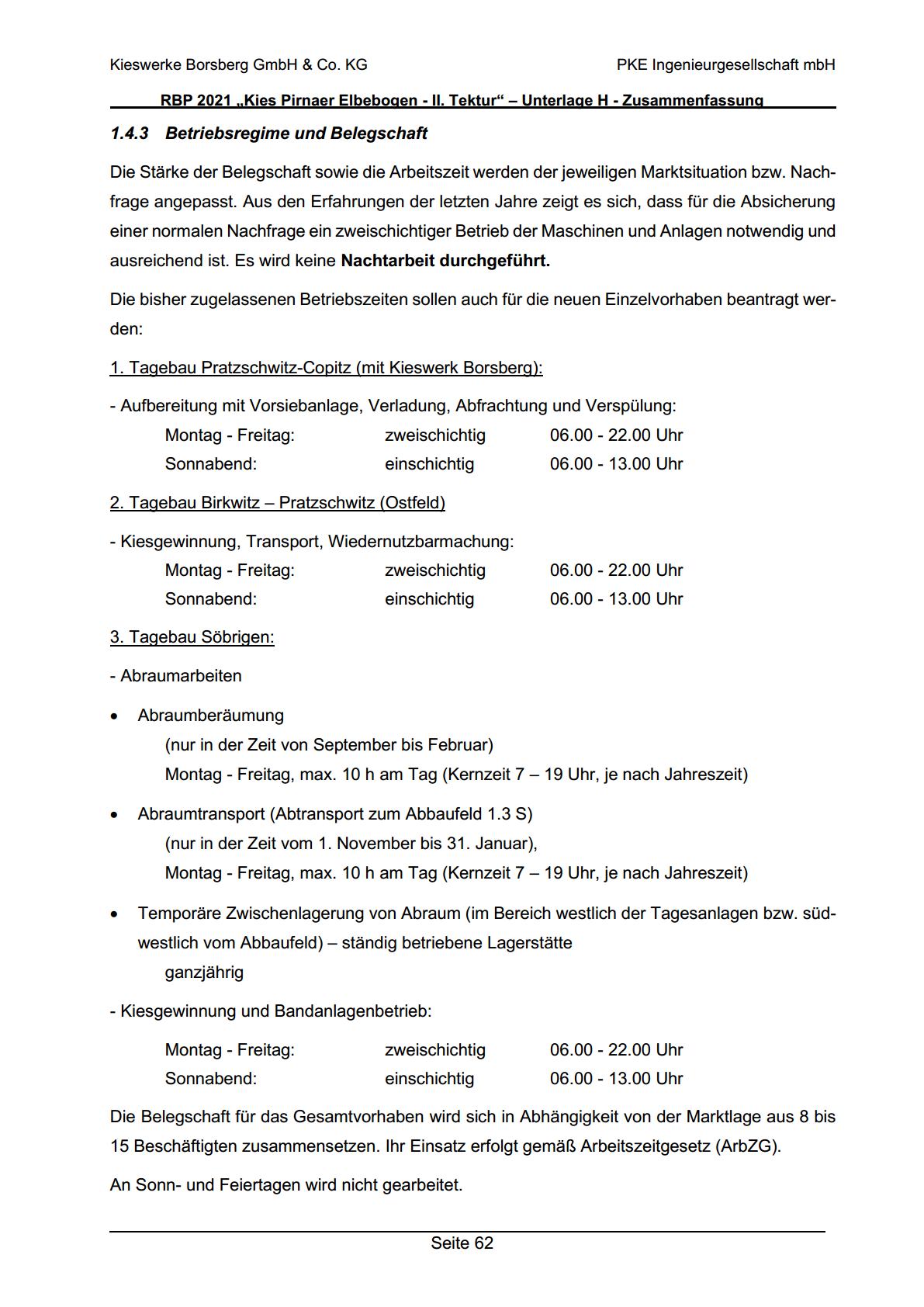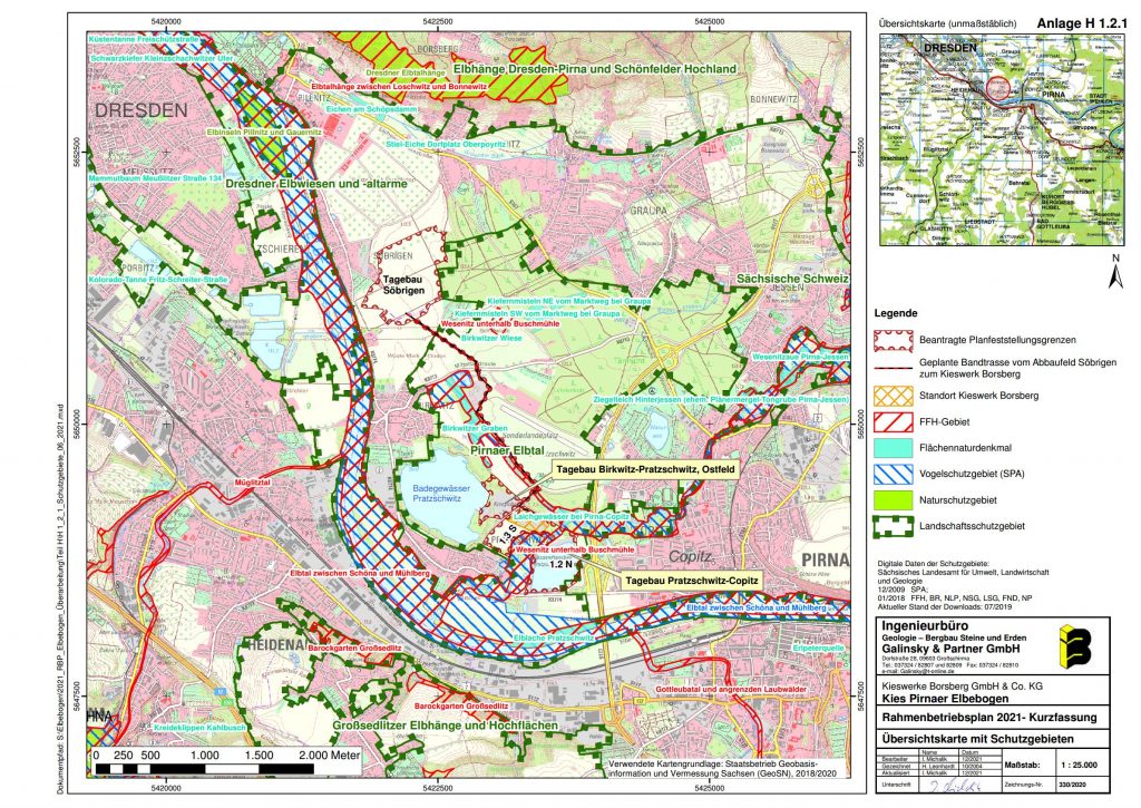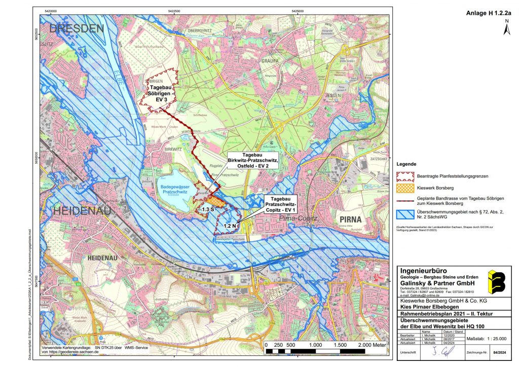 Ende 2021 legte die Borsberg GmbH dem Oberbergamt einen neuen Rahmenbetriebsplan vor. Im Rahmen des Planfeststellungsverfahrens „KiesPirnaer Elbebogen“ konnte auch die Öffentlichkeit im April 2022 dazu Stellung beziehen. Nach offiziellen Angaben vom OBA gab es 164 Einwendungen.